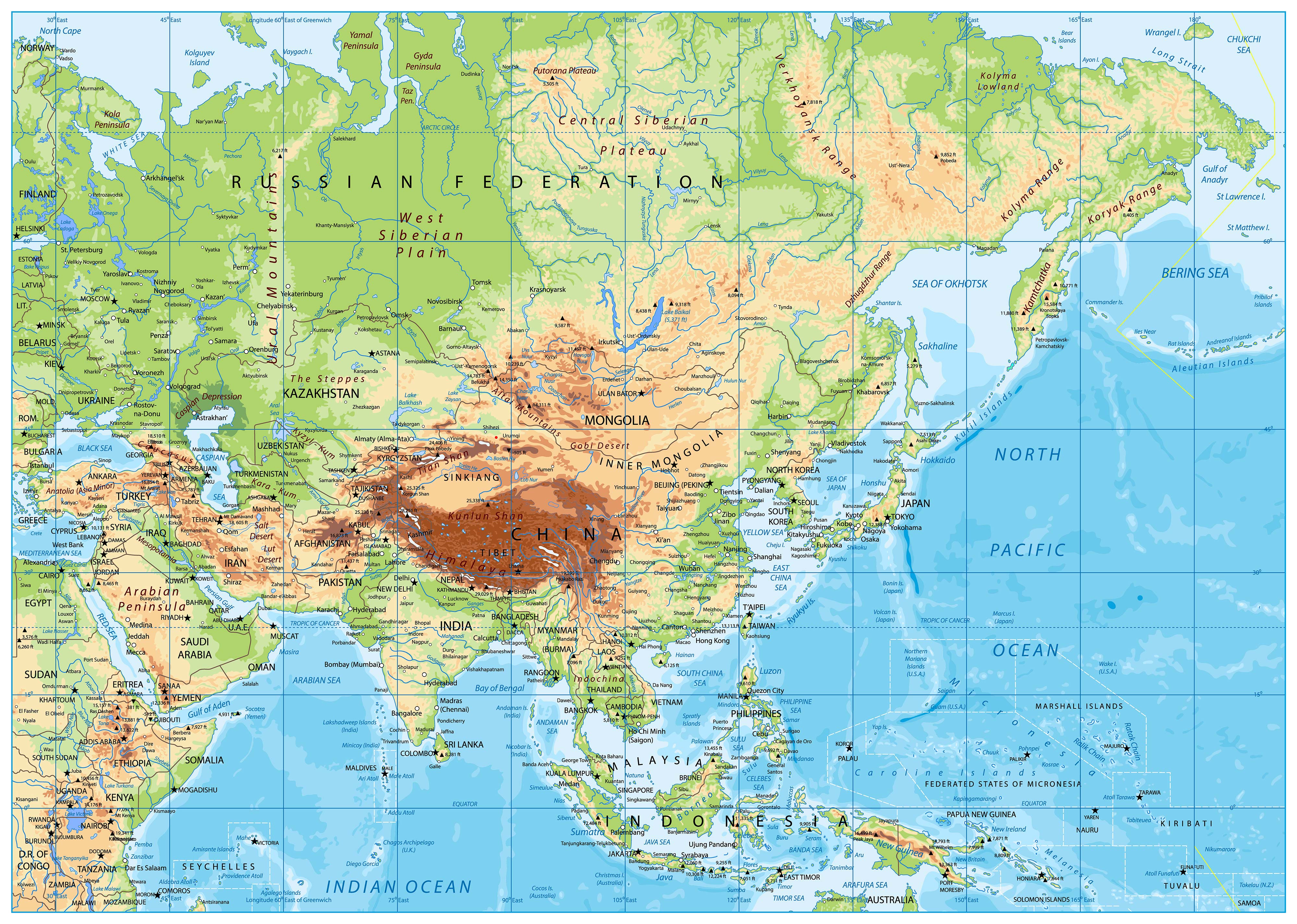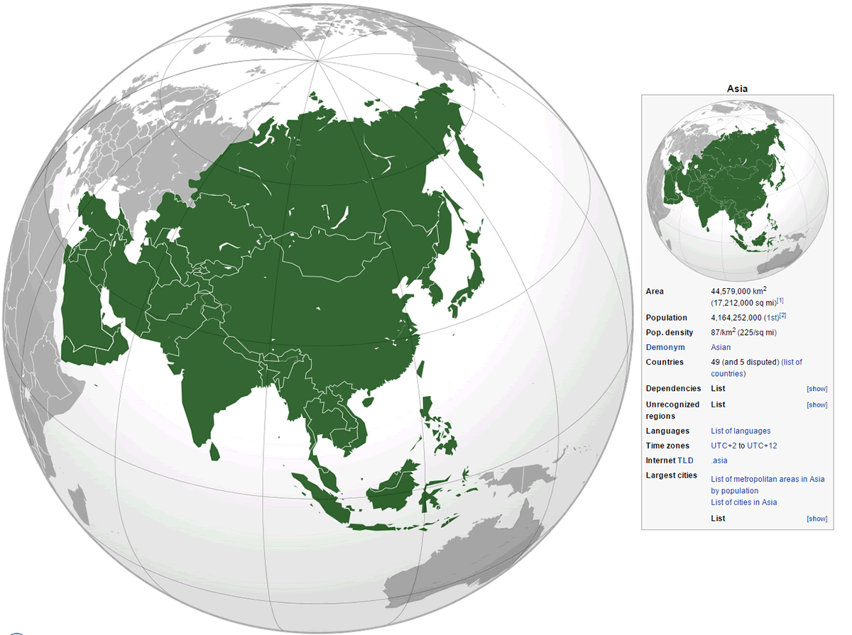 Asia has more than 4,500 islands and 3 million square miles of land. Asia is a region of the world that sits between the Pacific and Indian Oceans. It is home to over 50 countries, including China, Japan, India, and much of Southeast Asia.
