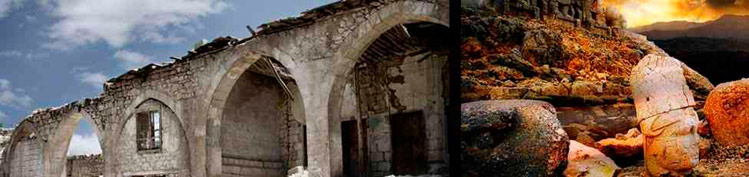 The Nemrud Mountain tumulus in the National Park, Karakus Hill, Cendere Bridge, Samsat, Arsameia, Dikilitas, Kahta, GOksu Bridge, and rock graves are other sites in the province worth seeing.