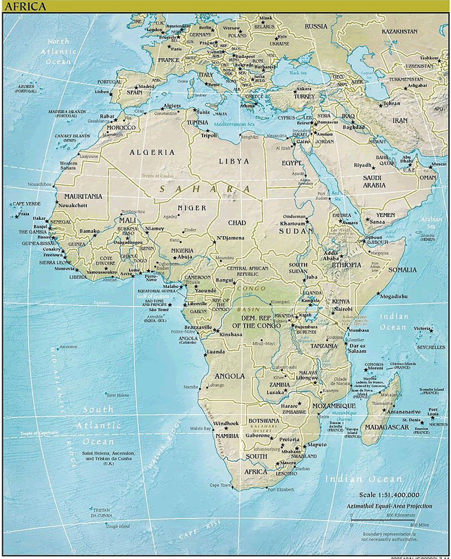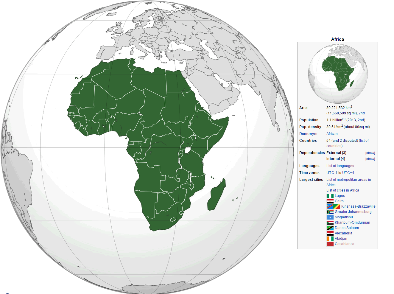 Africa is located entirely in the Southern Hemisphere and mostly in the Eastern Hemisphere. Africa is the world's second largest continent, both in area and population.