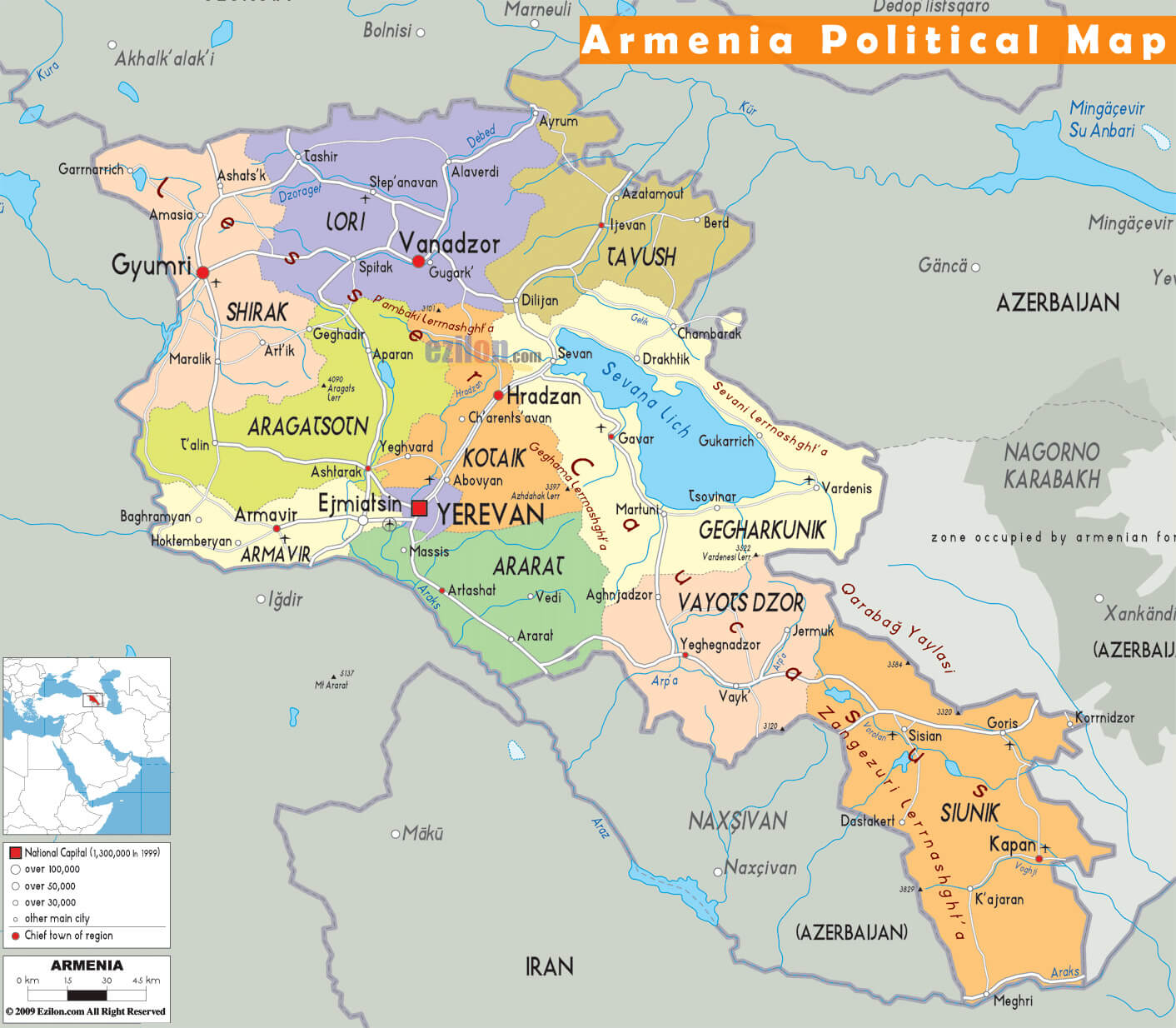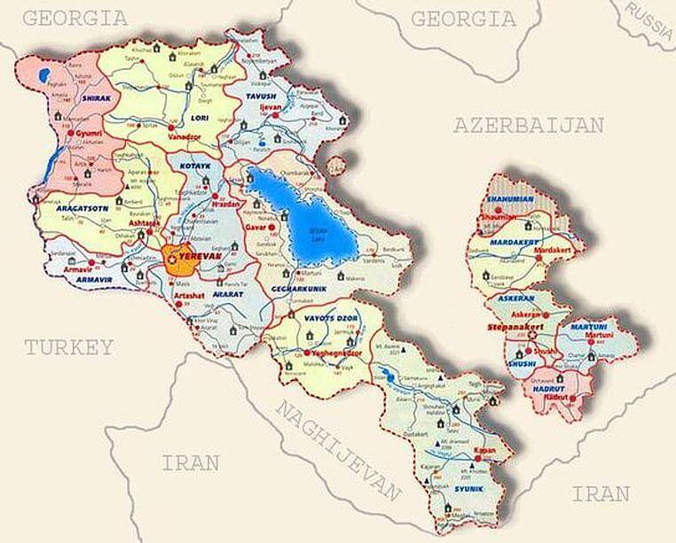 political map of armenia
