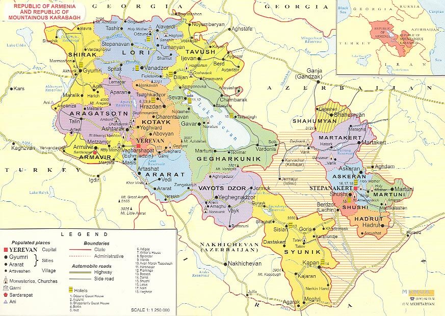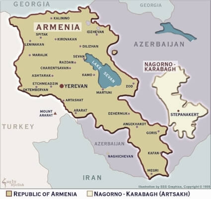 Map of Armenia and Nagorno Karabakh