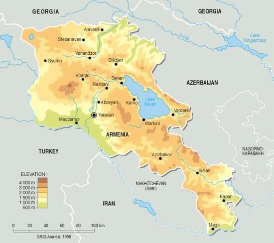 armenia physical map