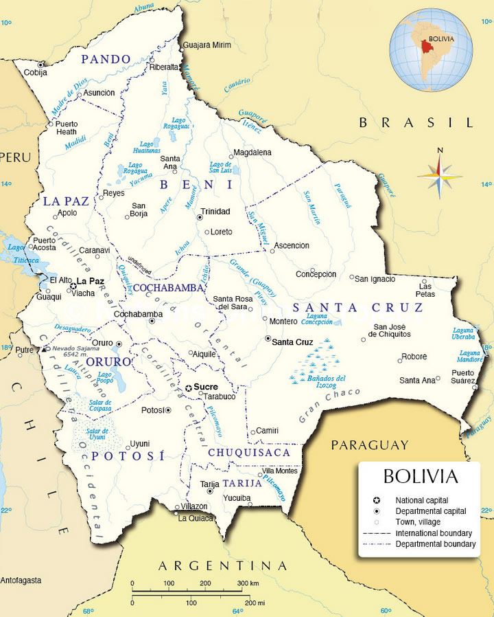 Bolivia has a population of 10,907,778 people, Bolivia's capital city is Sucre and largest city Santa Cruz de la Sierra.
