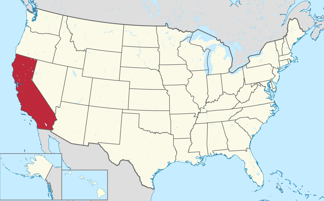 California is a state located on the West Coast of the United States. It is the most populous U.S. state,[4] home to one out of eight people who live in the U.S., with a total of 38 million people, and it is the third largest state by area (after Alaska and Texas).