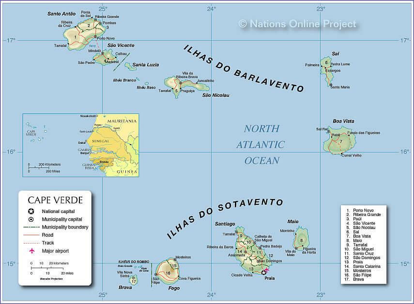 Navigate Cape Verde Map, Cape Verde countries map, satellite images of the Cape Verde, Cape Verde largest cities maps, political map of Cape Verde, driving directions and traffic maps.