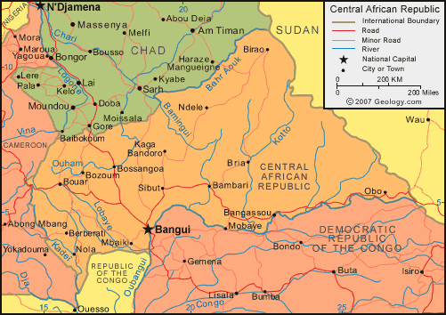 Navigate Central African Republic Map, Central African Republic countries map, satellite images of the Central African Republic, Central African Republic largest cities maps, political map of Central African Republic, driving directions and traffic maps.