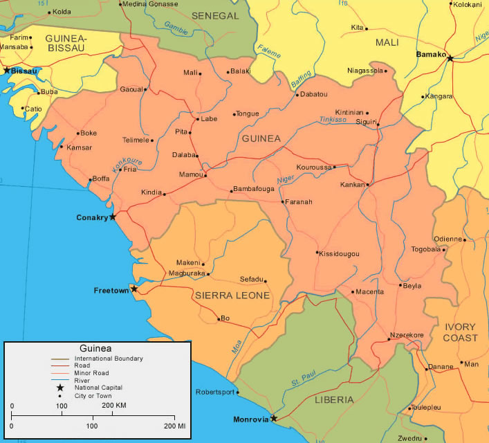Guinea has a population of 10,057,975 people, Guinea's capital city is Conakry and largest city Conakry.