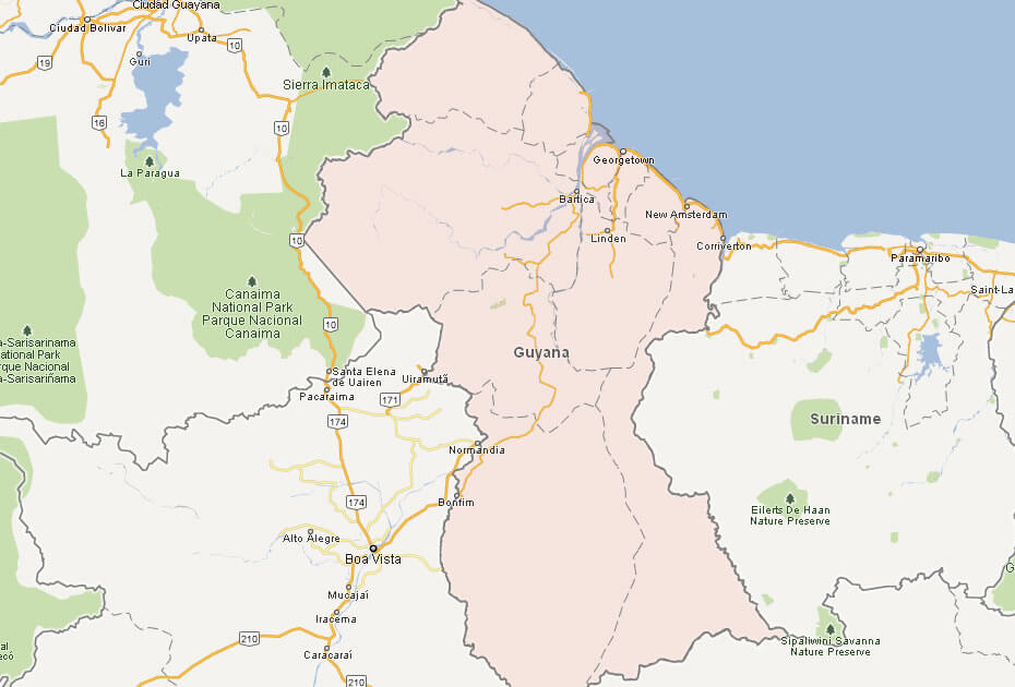 Navigate Guyana Map, Guyana countries map, satellite images of the Guyana, Guyana largest cities maps, political map of Guyana, driving directions and traffic maps.