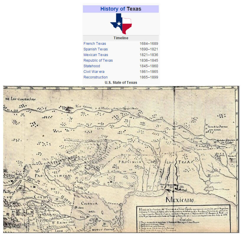 Nicolas de La Fora's 1771 map of the northern frontier of New Spain clearly shows the Provincia de los Tejas.