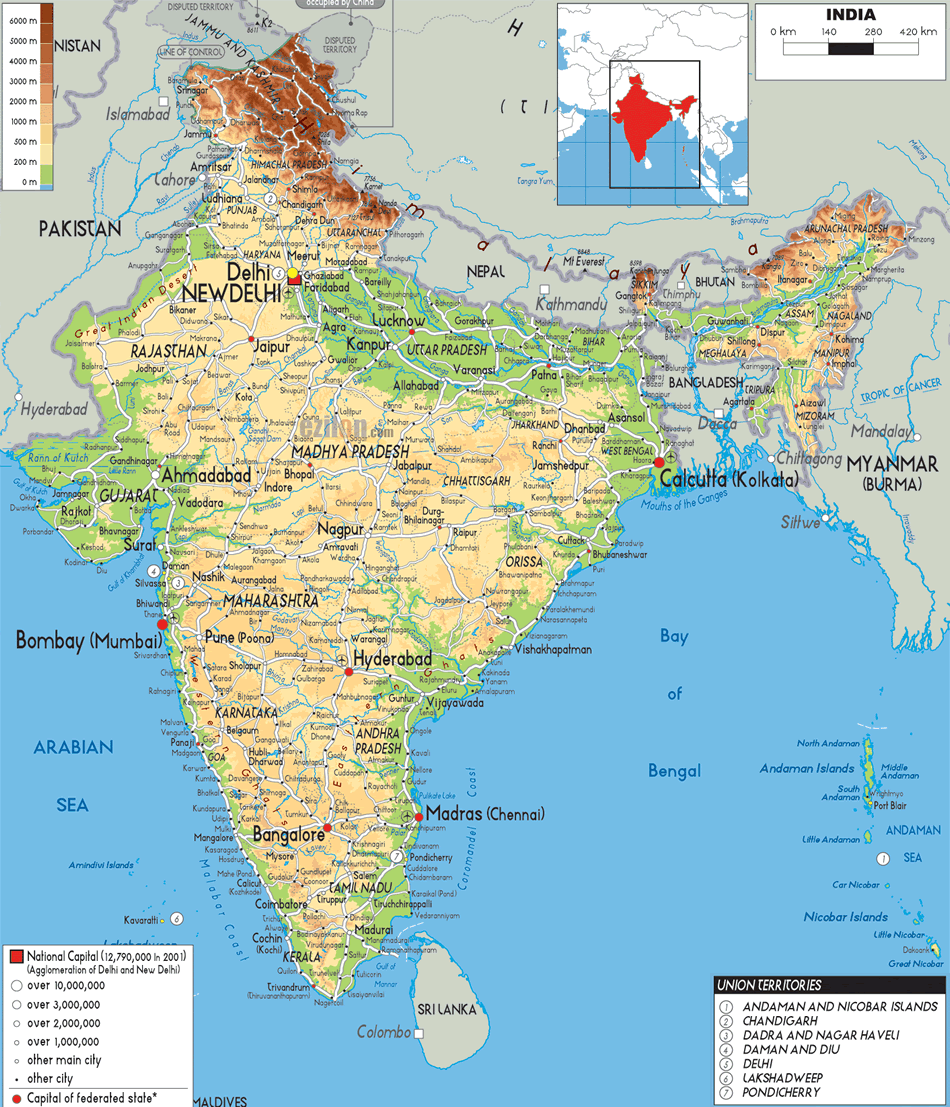 India has a population of 1,210,193,422 people, India's capital city is New Delhi and largest city Mumbai.