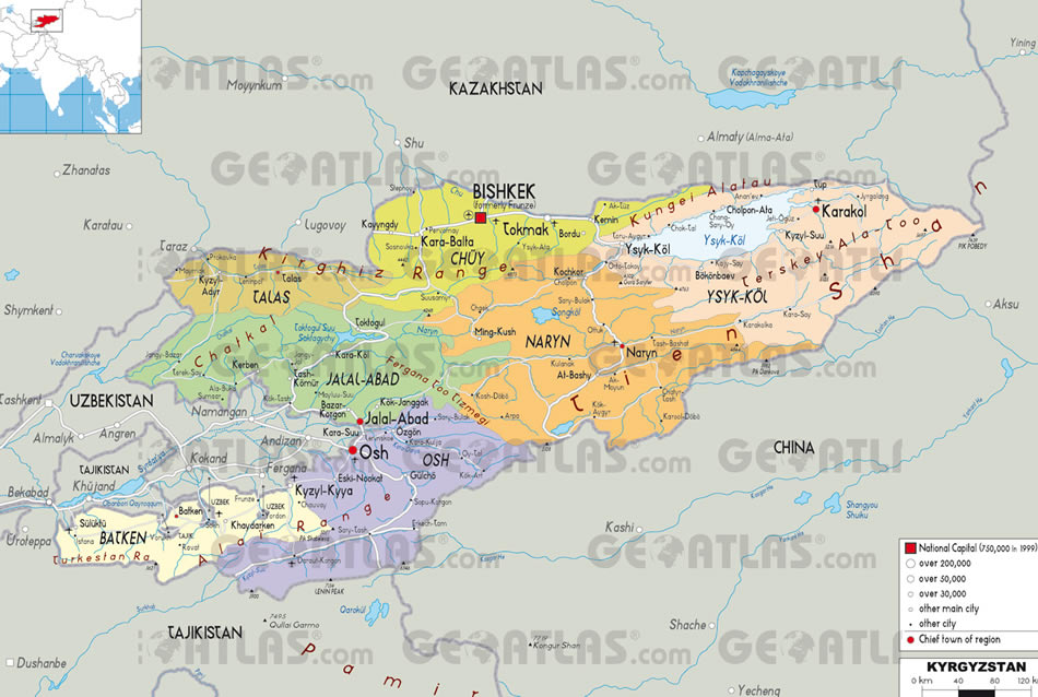 Kyrgyzstan has a population of 5,550,239 people, Kyrgyzstan's capital city is Bishkek and largest city Bishkek.
