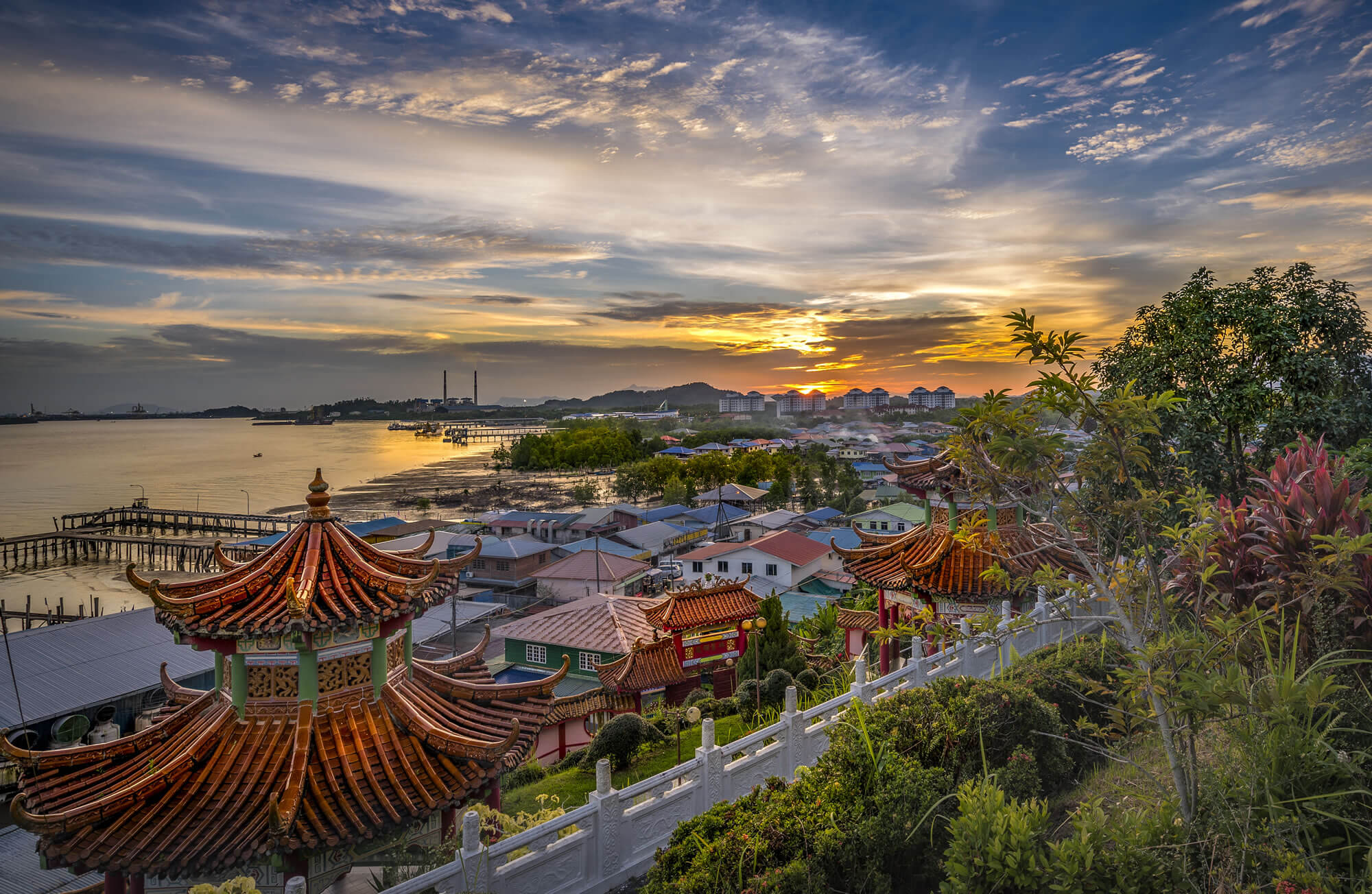 Kuching, Sarawak, Malaysia: Sunset at Kuching, Sarawak with colorful sky sunset beautiful light during golden hour.