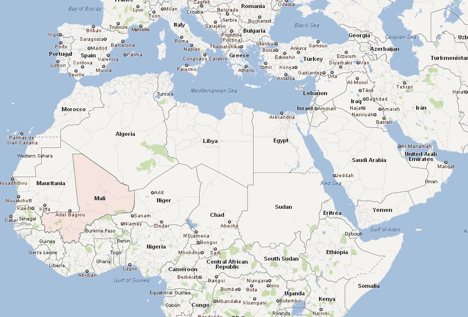 With interactive Mali Map, view regional highways maps, road situations, transportation, lodging guide, geographical map, physical maps and more information. On Mali Map, you can view all states, regions, cities, towns, districts, avenues, streets and popular centers' satellite, sketch and terrain maps.