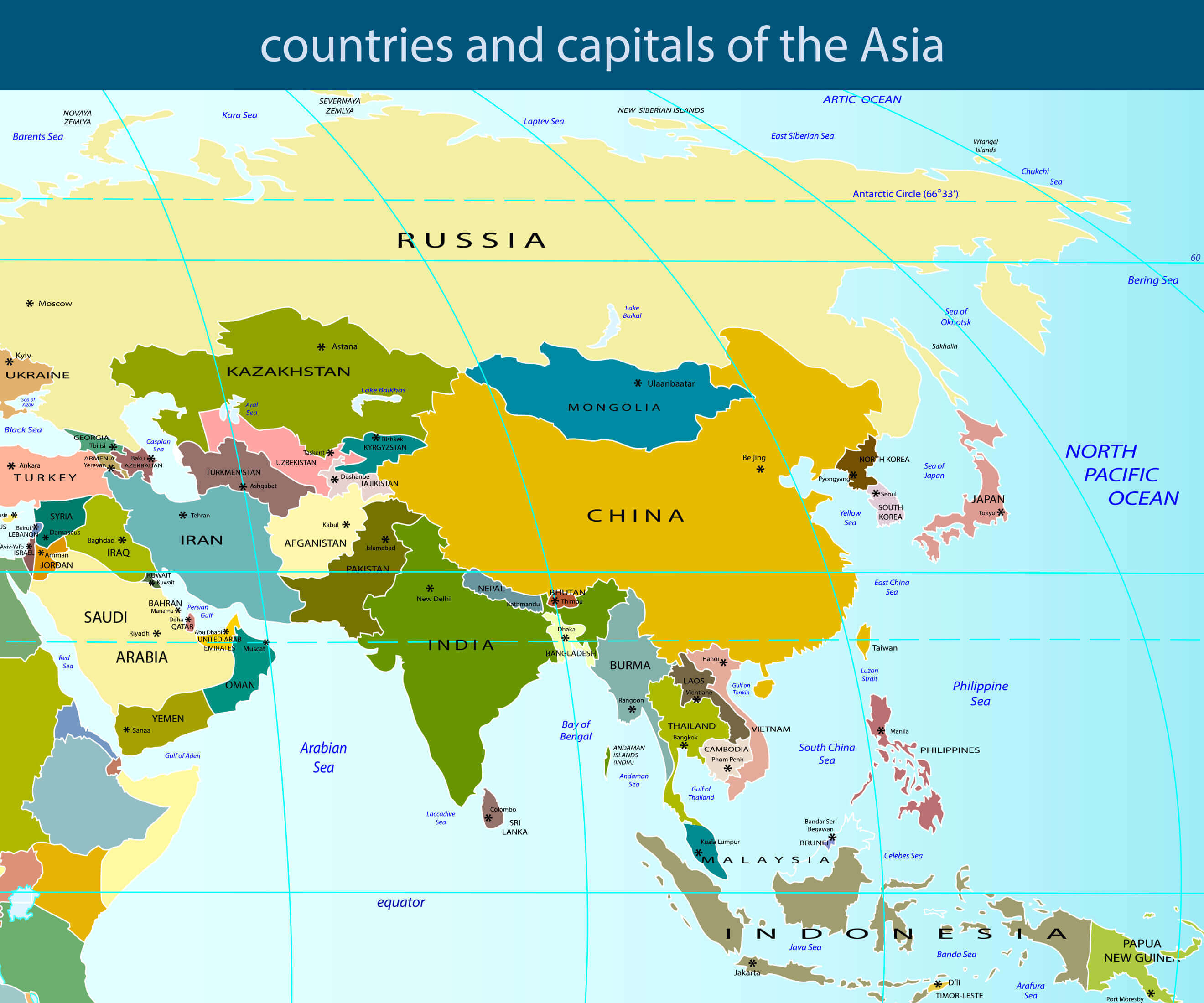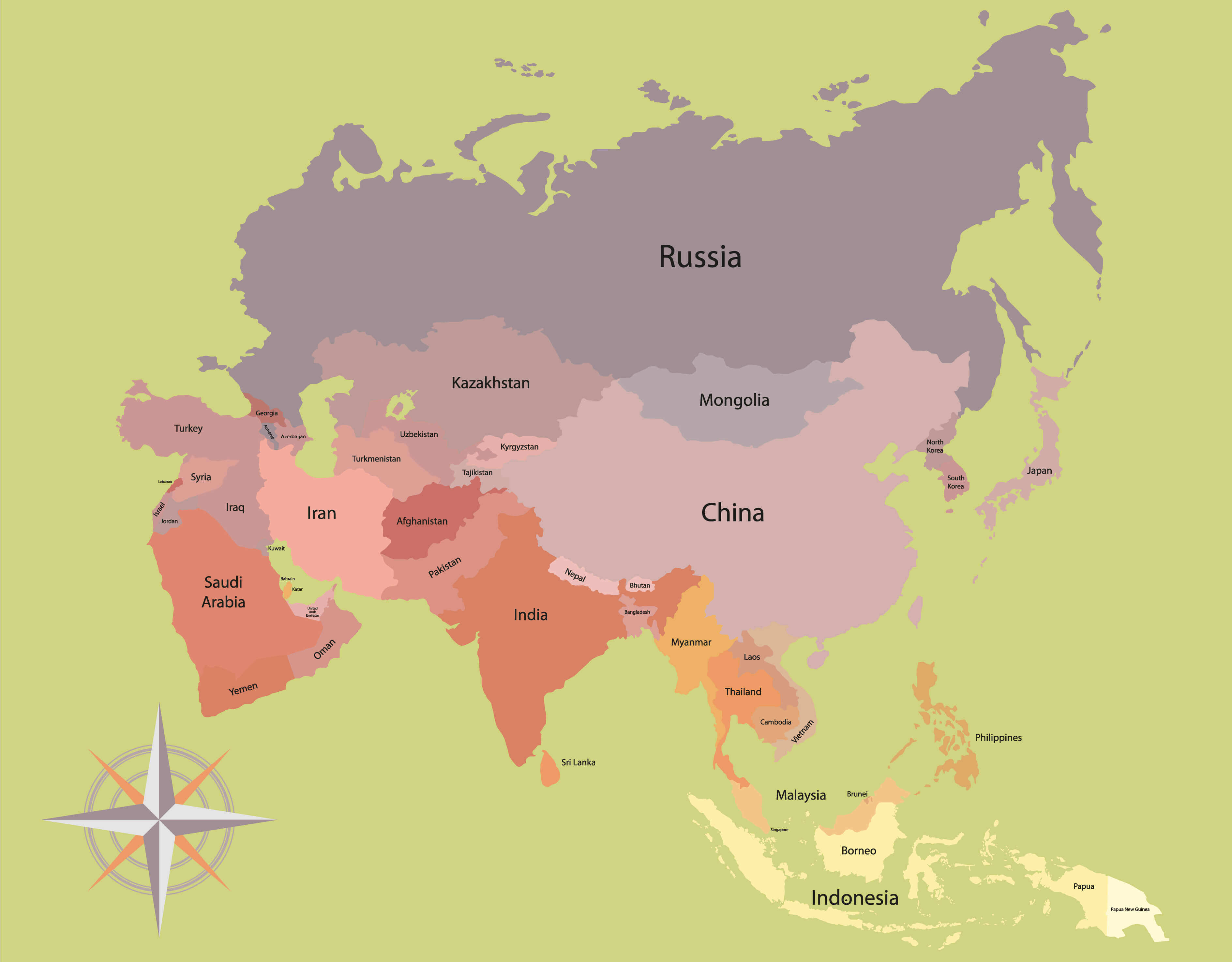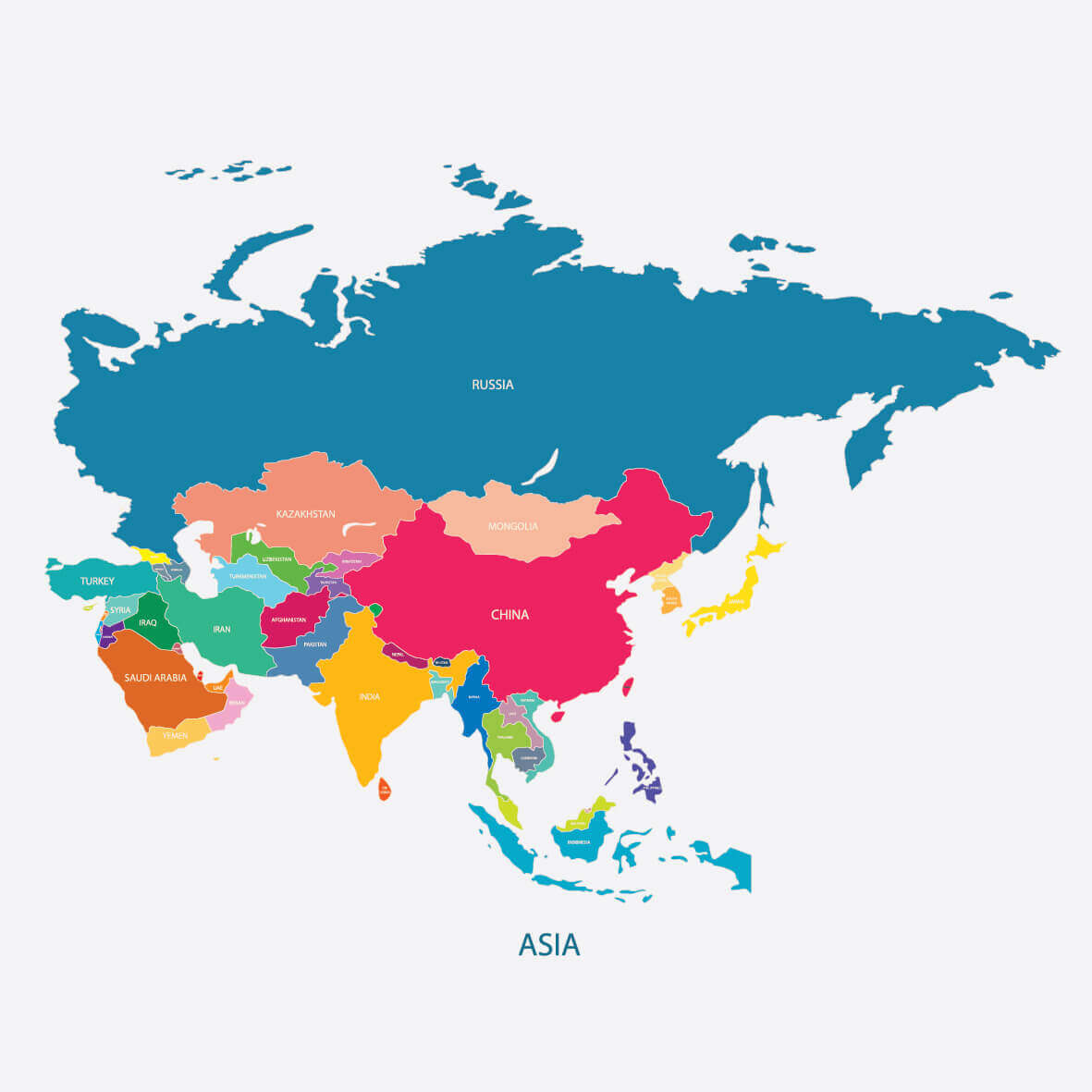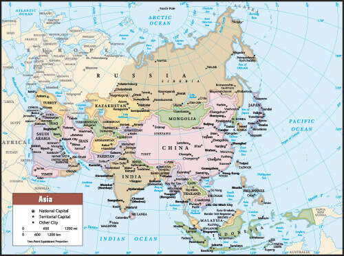 Asia highly detailed map elements are separated in editable layers clearly labeled.