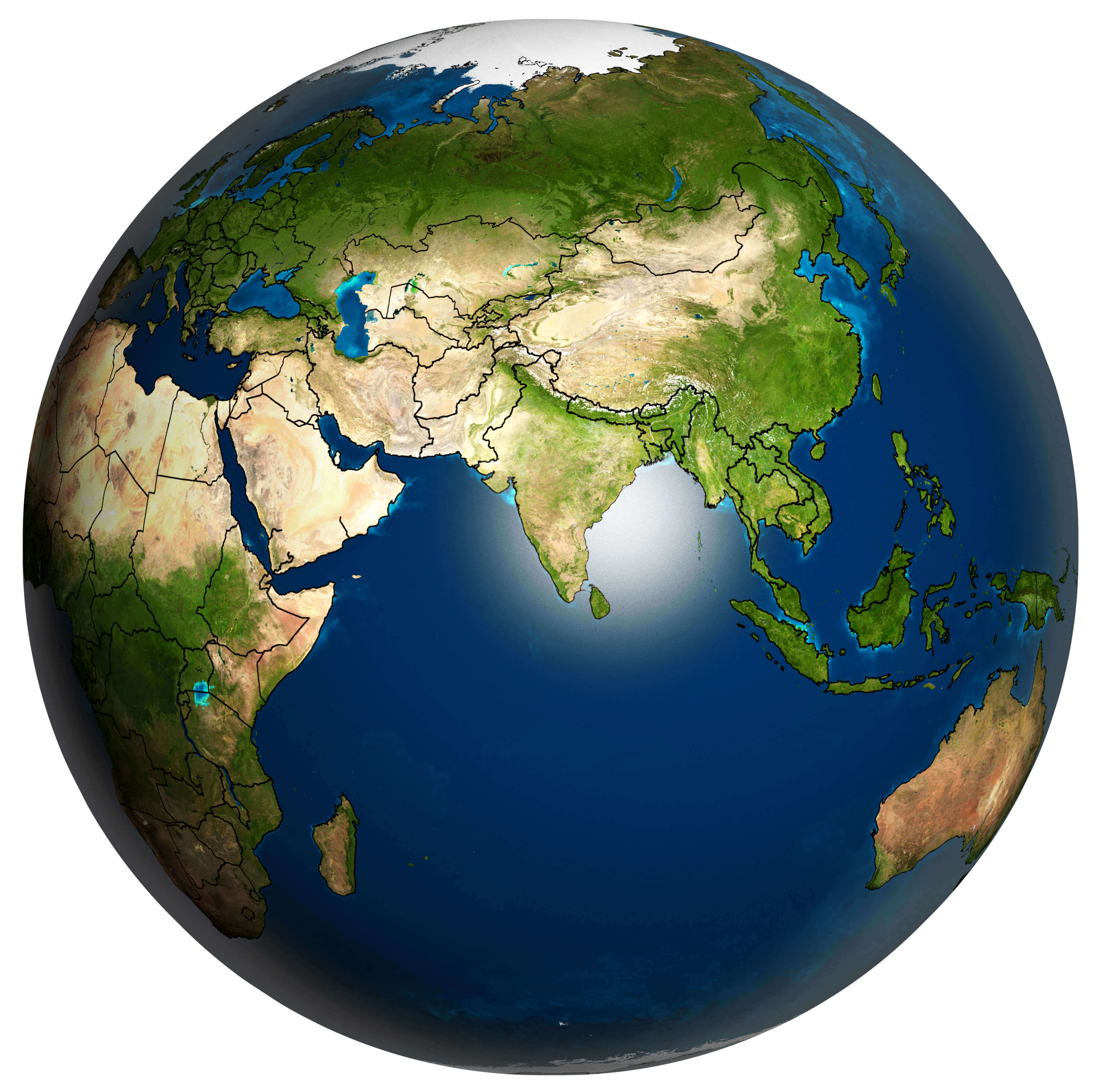 The Earth with Accurate Asia Country Boundaries Map, Image Furnished by NASA