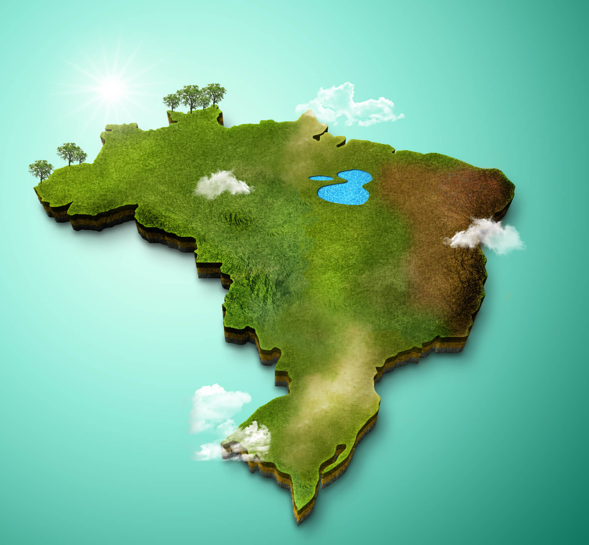 Realistic 3D Map of Brazil.