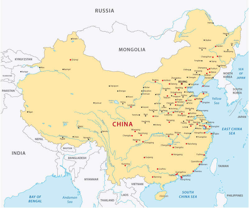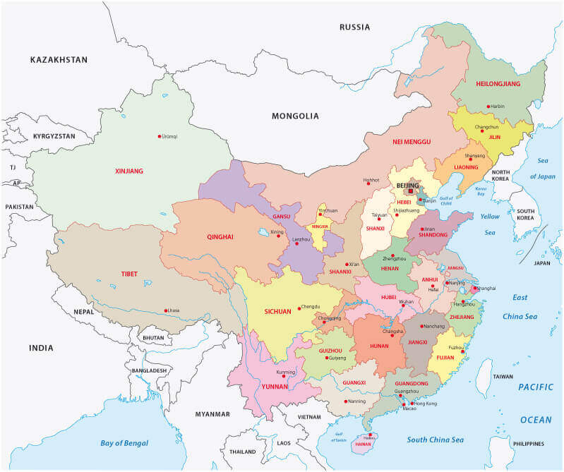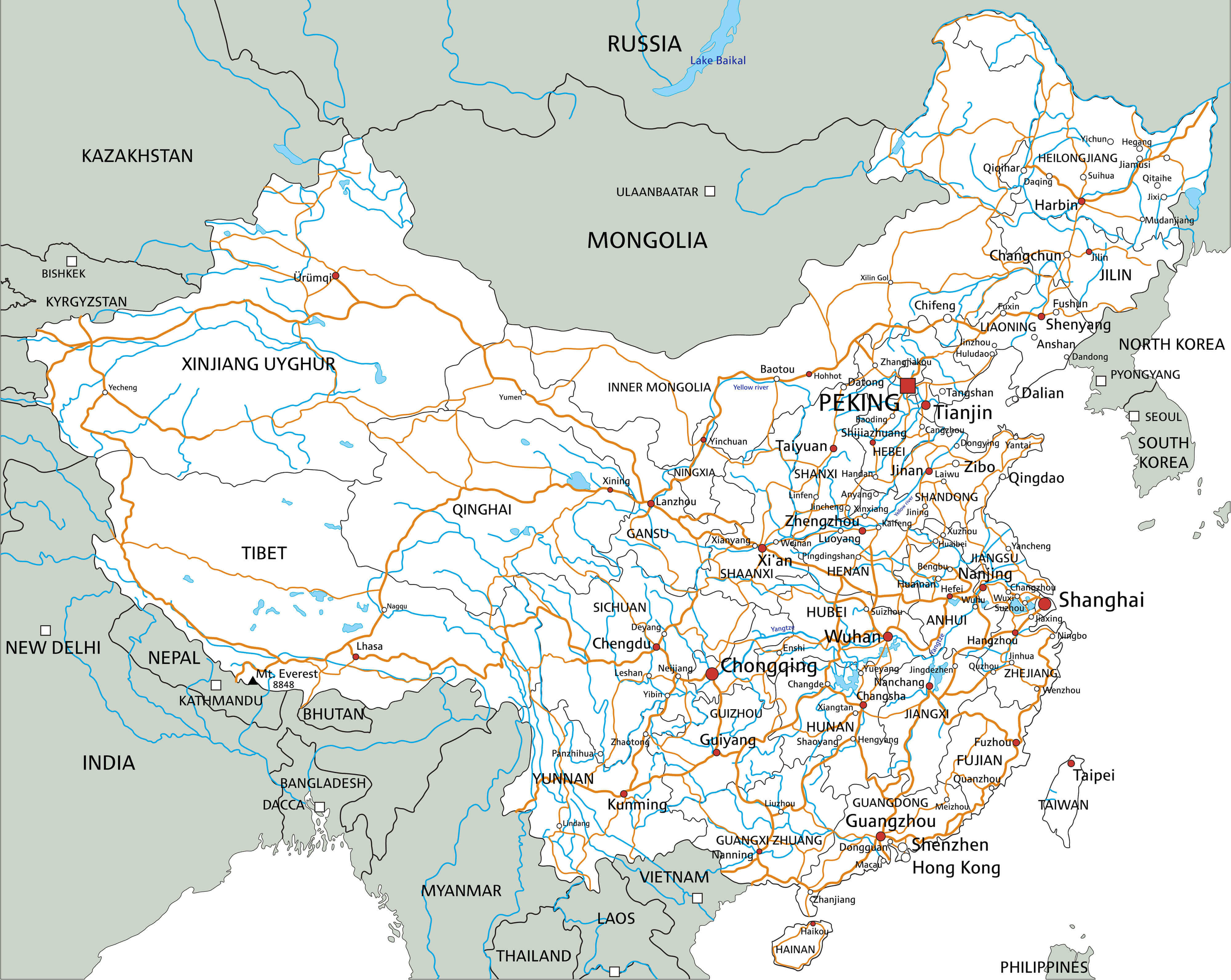 A High Detail vector Map of the People's Republic of China's Regions and major cities.