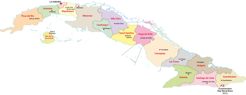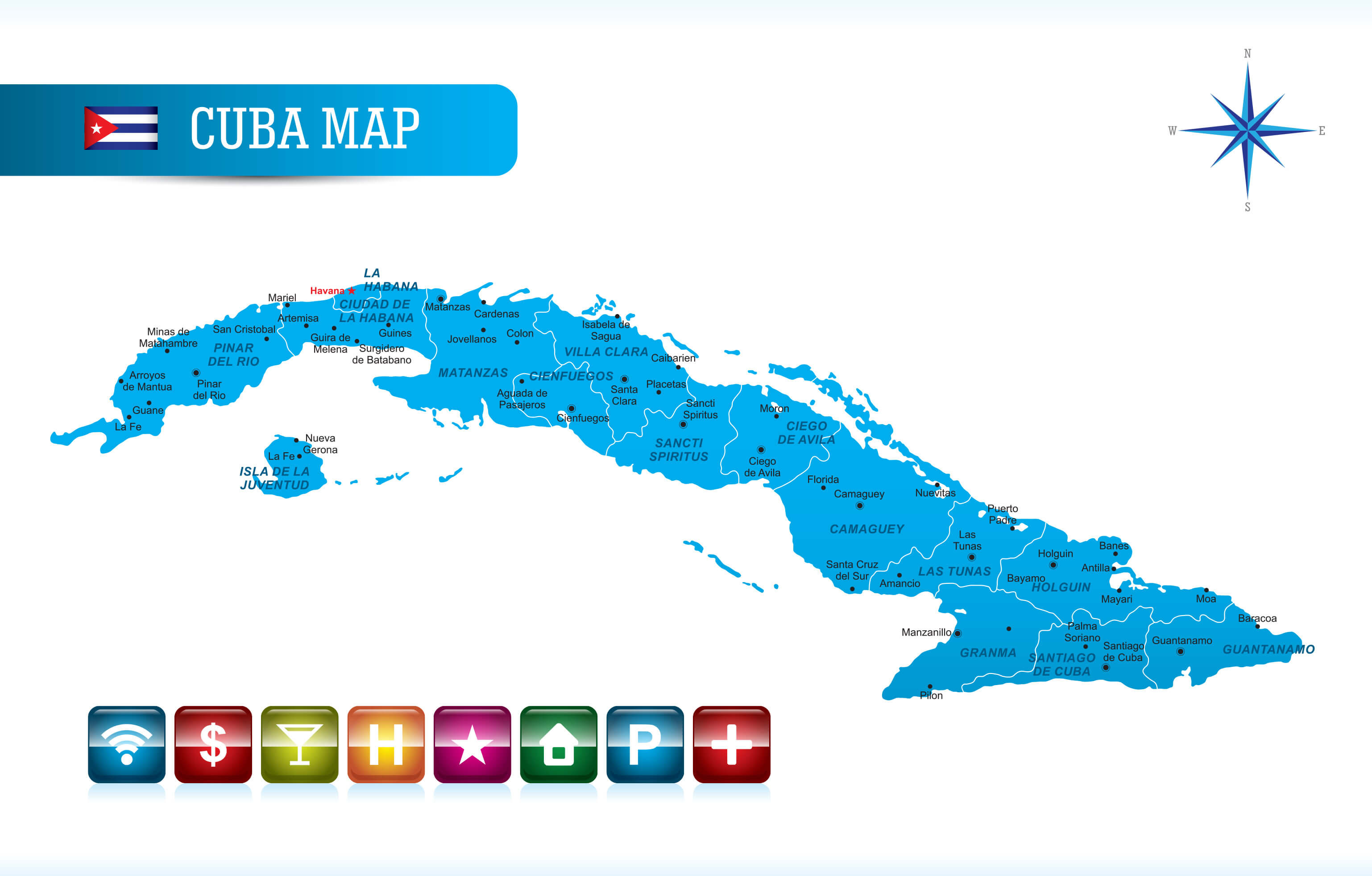Navigate Cuba map, satellite images of the Cuba, states, largest cities, political map, capitals and physical maps.