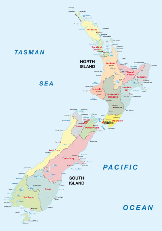 New Zealand Administrative Map with regions.