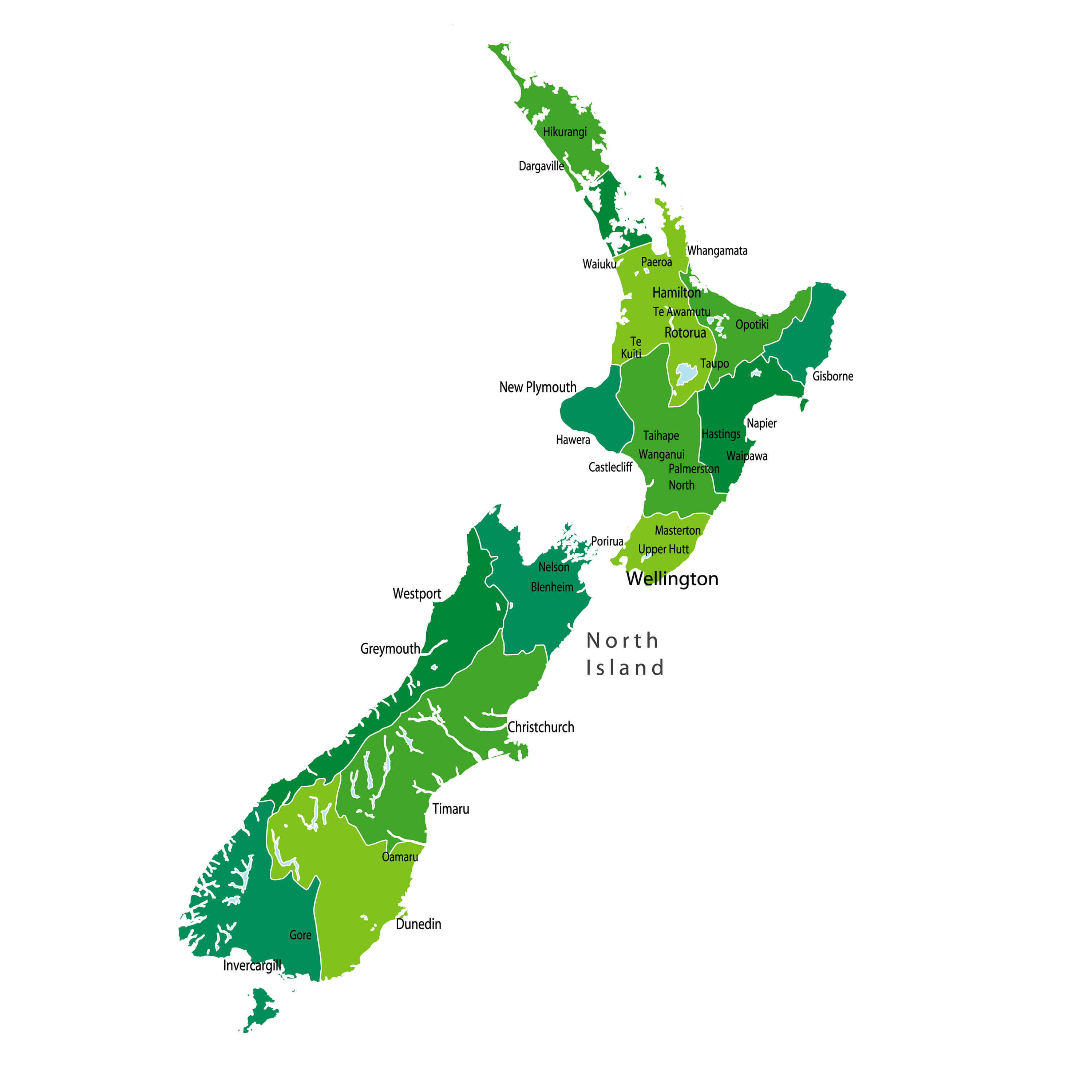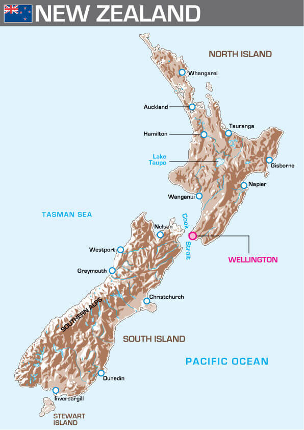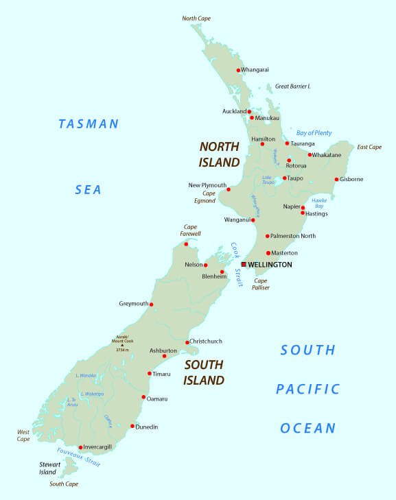 New Zealand Map with main cities.