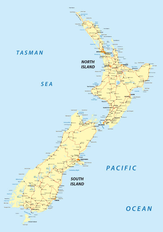 New Zealand Road Map with major cities.