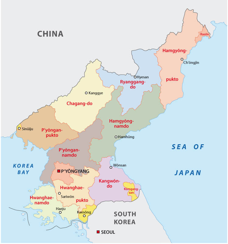 North Korea Administrative Map with regions.