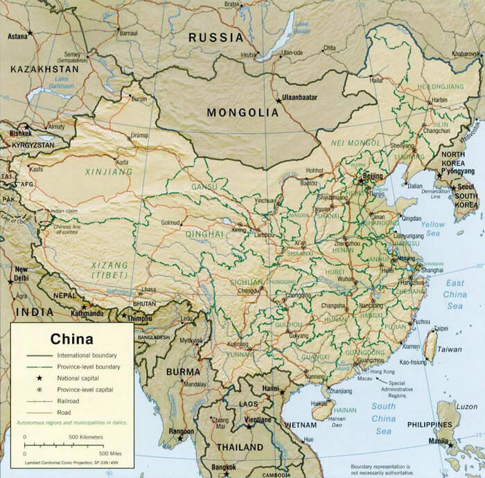 guideoftheworld.net offers a collection of China map, google map, China atlas, political, physical, satellite view, country infos, cities map and more map of China.