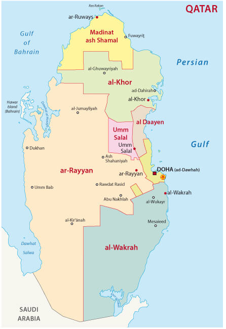 Navigate Qatar map, satellite images of the Qatar, states, largest cities, political map, capitals and physical maps.