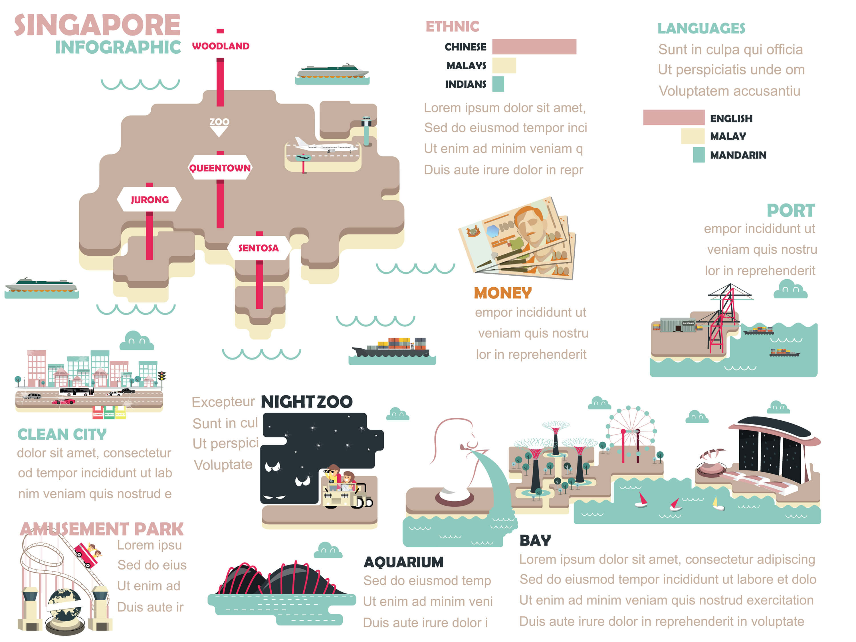 Republic of SINGAPORE. flag. Asia. World Map. Travel vector Illustration