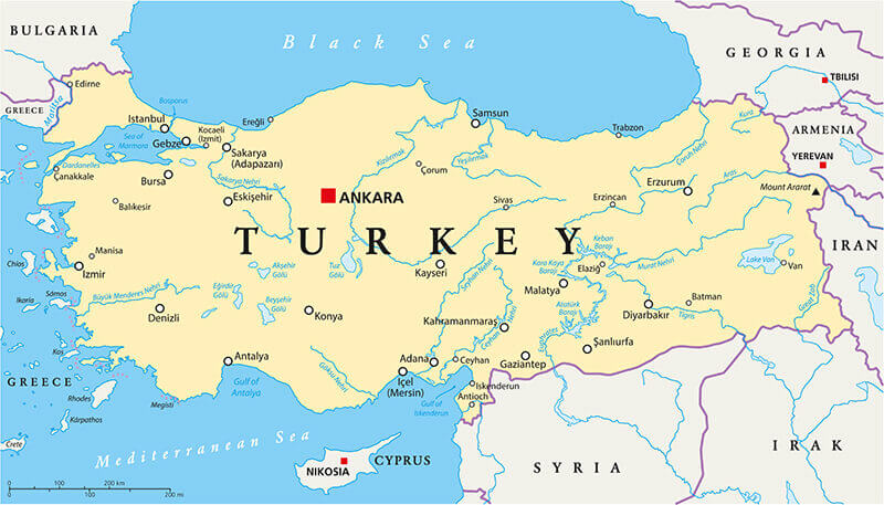 Highly detailed map of Turkey, vector with Major Cities.
