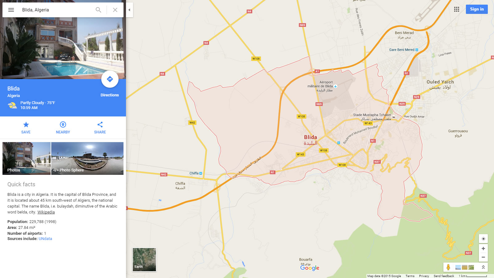 GuideoftheWorld.net offers a collection of Blida map, google map, Blida atlas, political, physical, satellite view, country infos, cities map and more map of Blida.