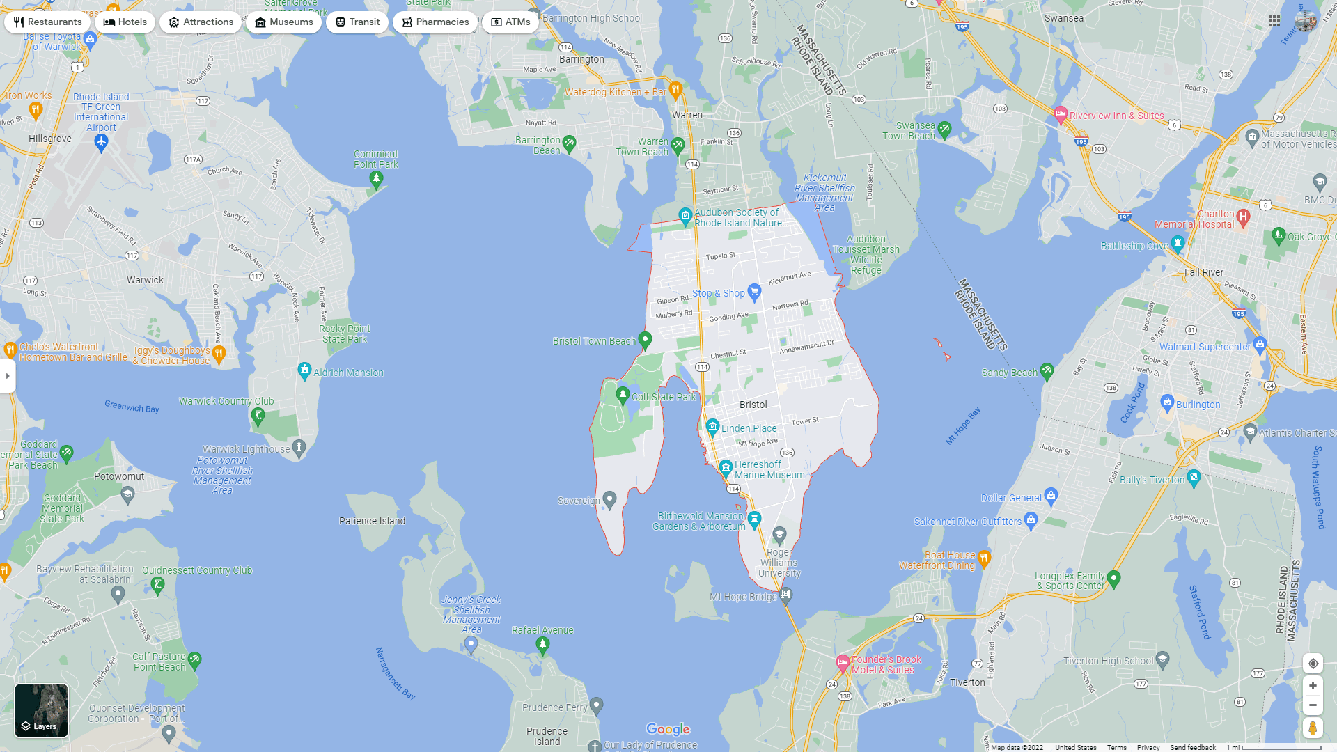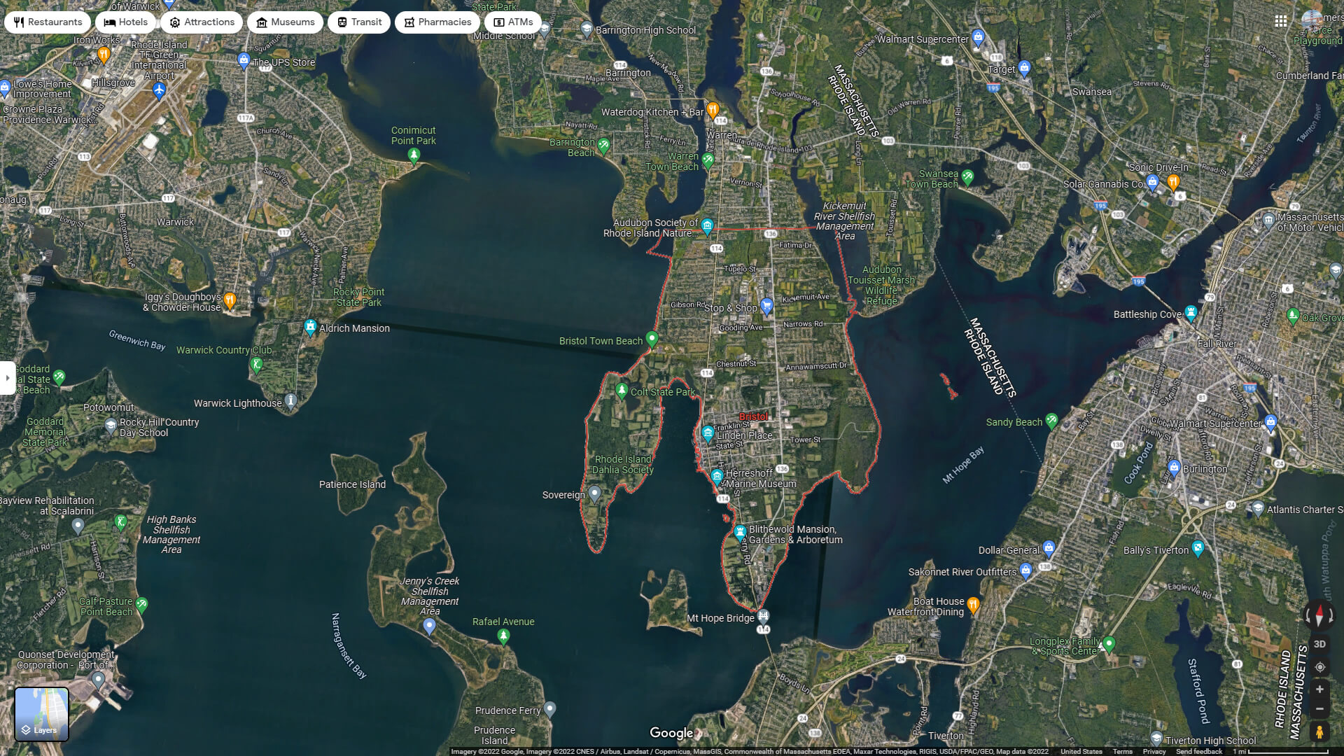 Bristol Town Rhode Island Google Map, Street Views, Maps Directions, Satellite Images