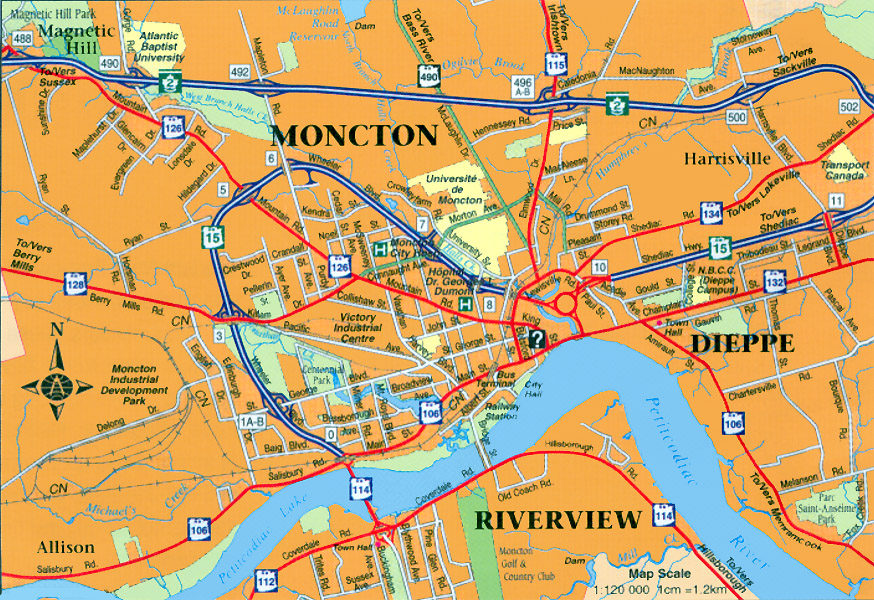 Navigate Moncton Map, Moncton city map, satellite images of Moncton, Moncton towns map, political map of Moncton, driving directions and traffic maps.