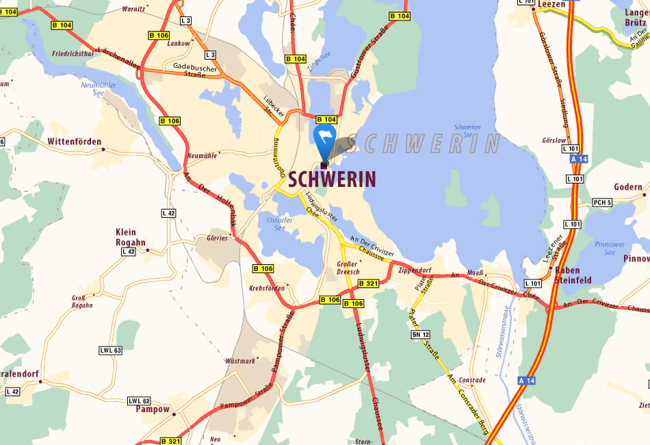 Navigate Schwerin Map, Schwerin city map, satellite images of Schwerin, Schwerin towns map, political map of Schwerin, driving directions and traffic maps.