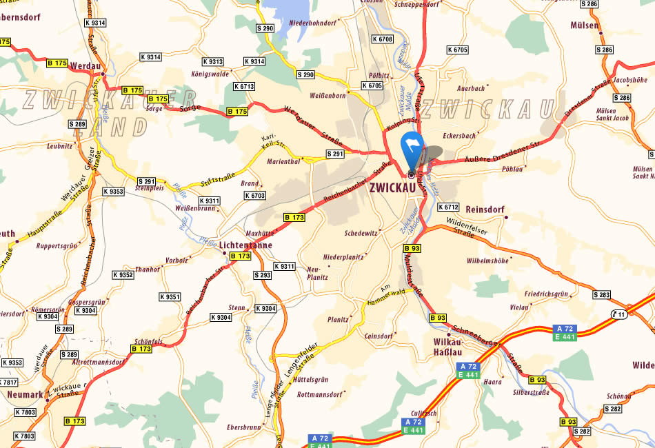 Navigate Zwickau Map, Zwickau city map, satellite images of Zwickau, Zwickau towns map, political map of Zwickau, driving directions and traffic maps.