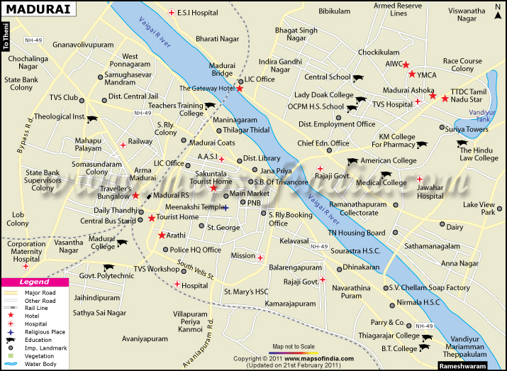 Navigate Madurai Map, Madurai city map, satellite images of Madurai, Madurai towns map, political map of Madurai, driving directions and traffic maps.