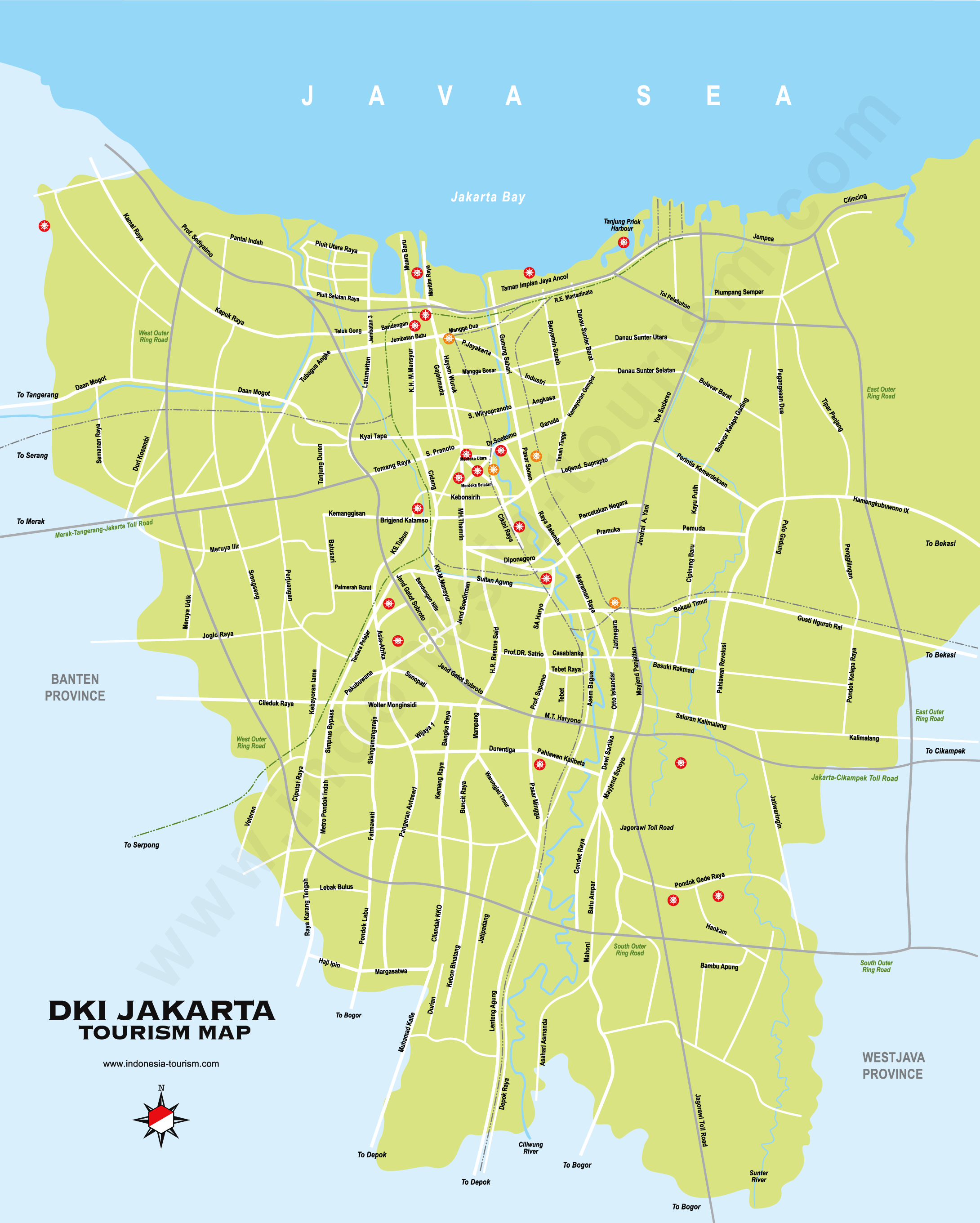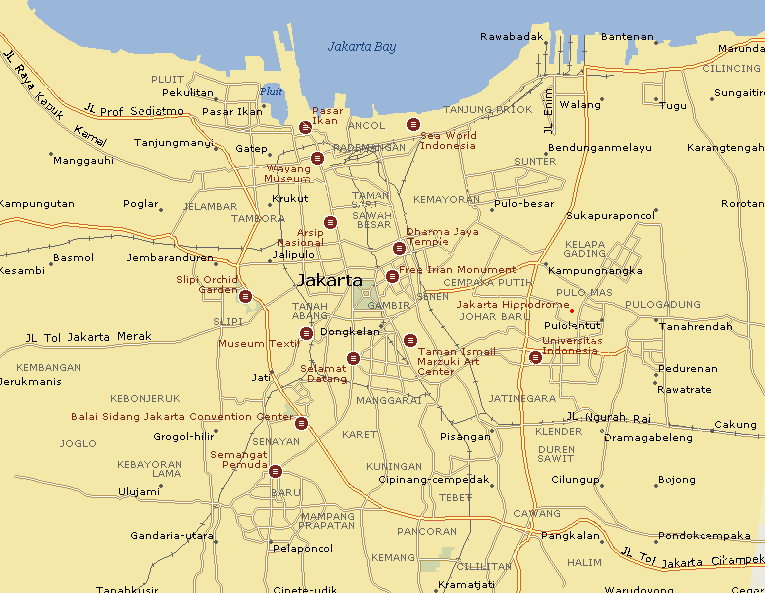 Navigate Jakarta Map, Jakarta city map, satellite images of Jakarta, Jakarta towns map, political map of Jakarta, driving directions and traffic maps.