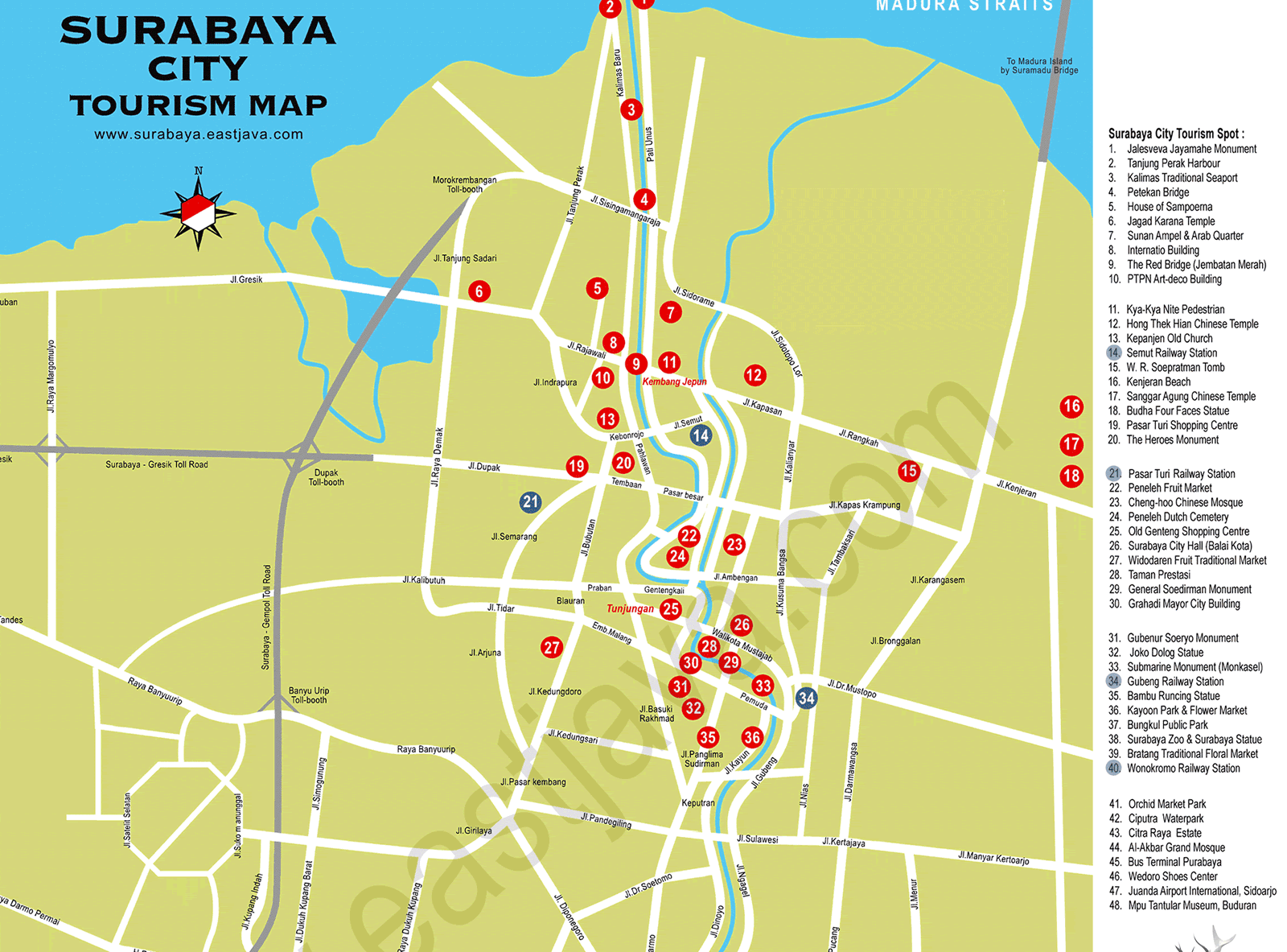 GuideoftheWorld.net offers a collection of Surabaya map, google map, Surabaya atlas, political, physical, satellite view, country infos, cities map and more map of Surabaya.