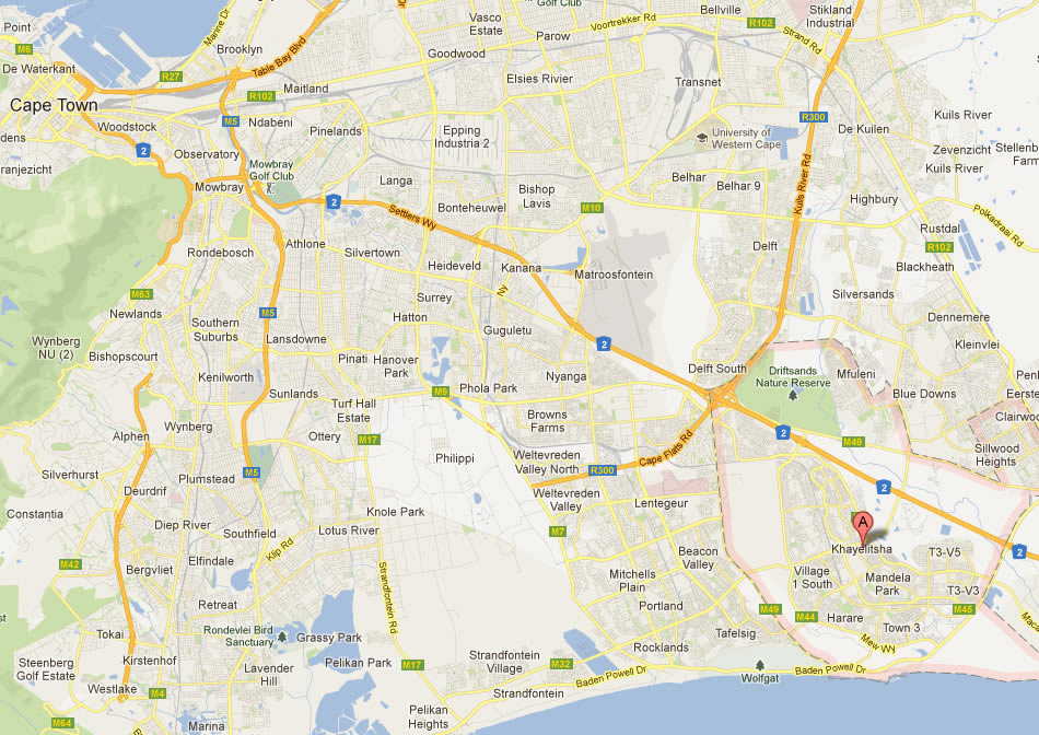 MAP OF KHAYELITSHA SOUTH AFRICA