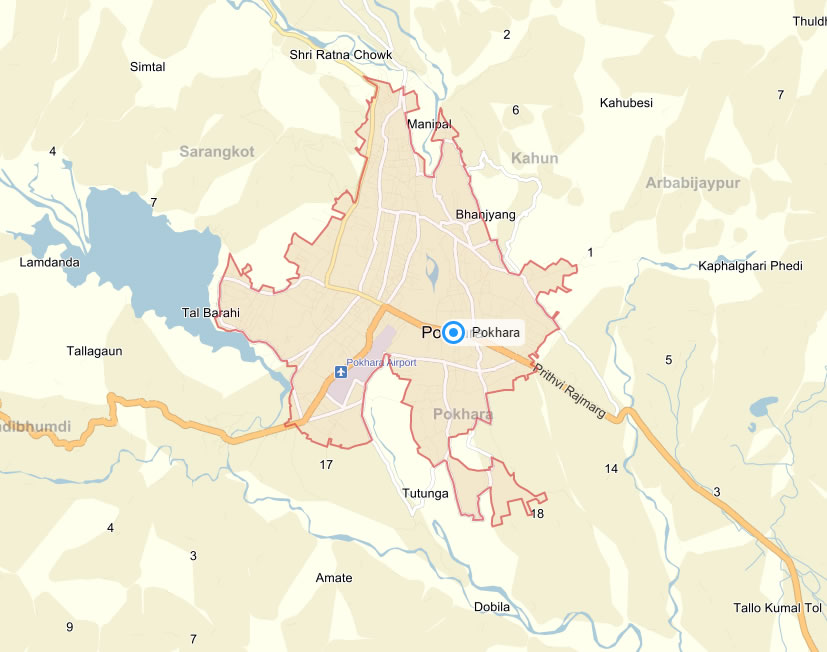 Navigate Pokhara Map, Pokhara city map, satellite images of Pokhara, Pokhara towns map, political map of Pokhara, driving directions and traffic maps.