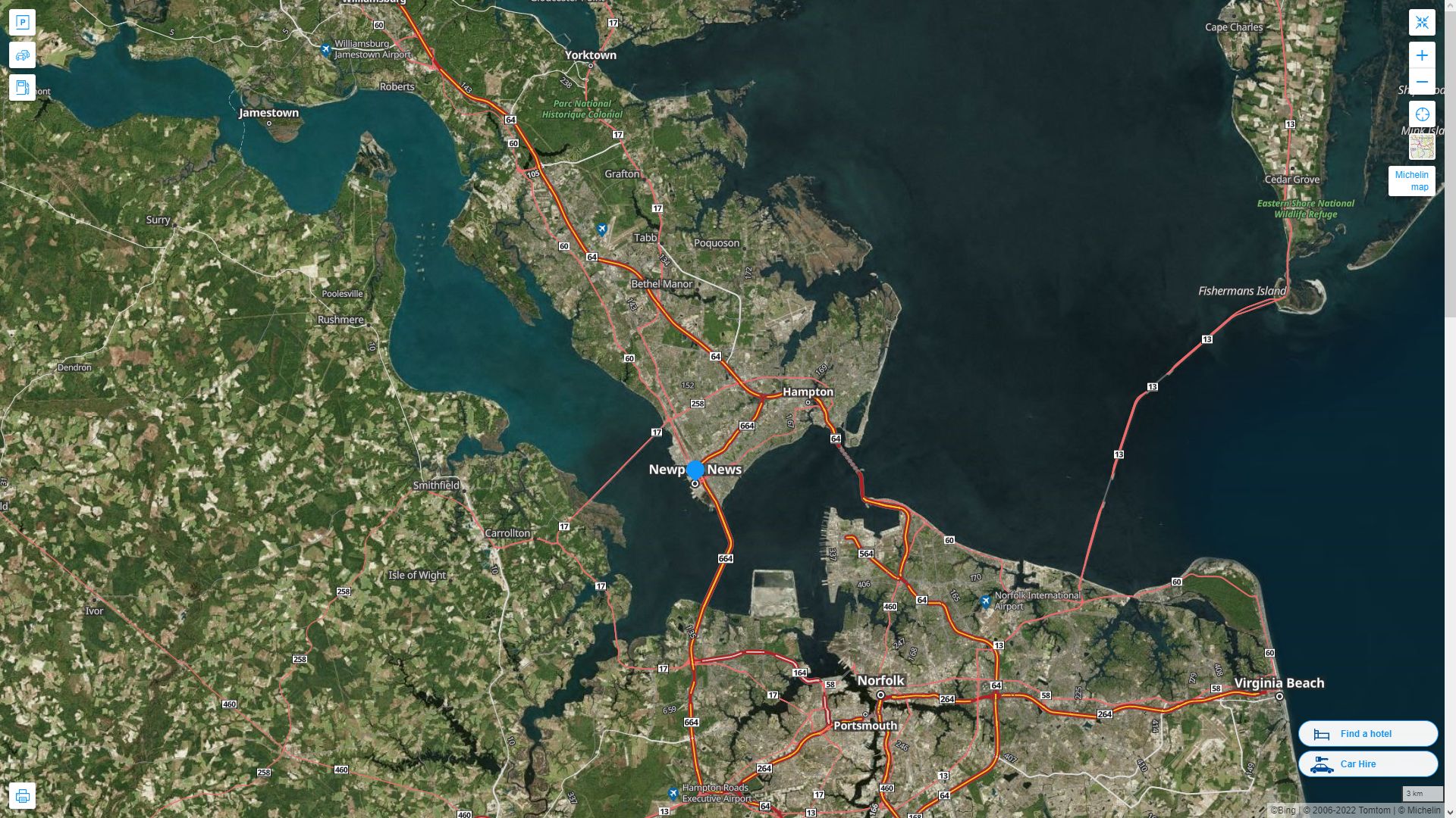 NEWPORT NEWS VIRGINIA HIGHWAY AND ROAD MAP WITH SATELLITE VIEW