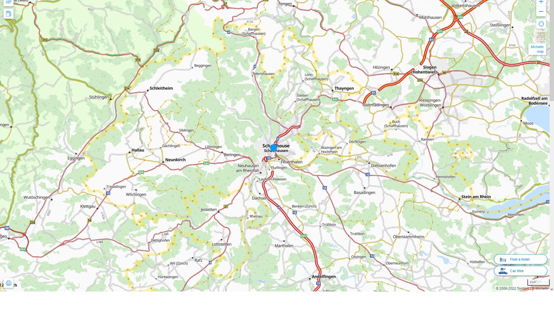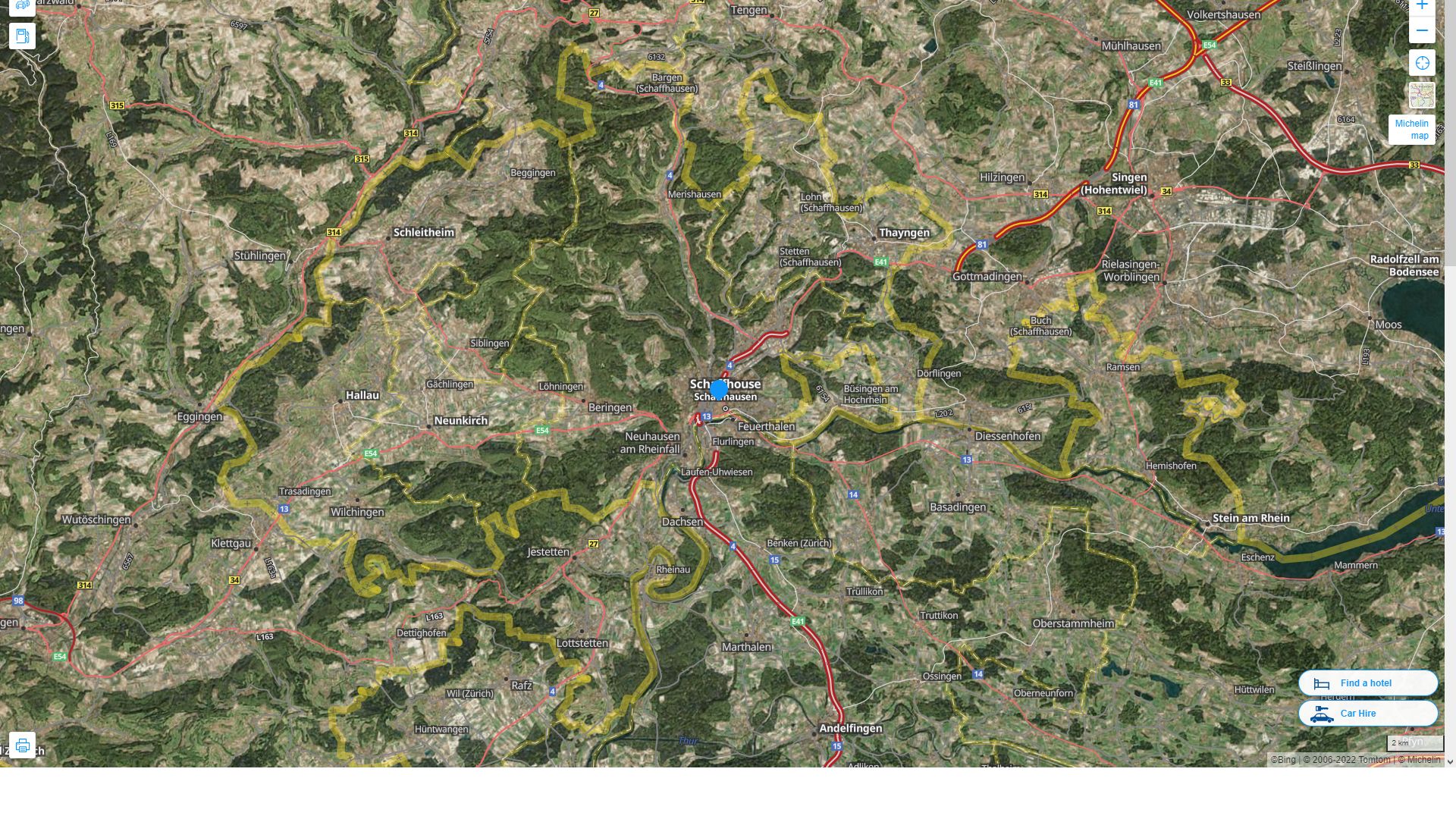 SCHAFFHAUSEN HIGHWAY AND ROAD MAP WITH SATELLITE VIEW