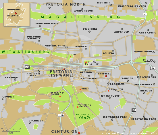 Navigate Pretoria Map, Pretoria city map, satellite images of Pretoria, Pretoria towns map, political map of Pretoria, driving directions and traffic maps.