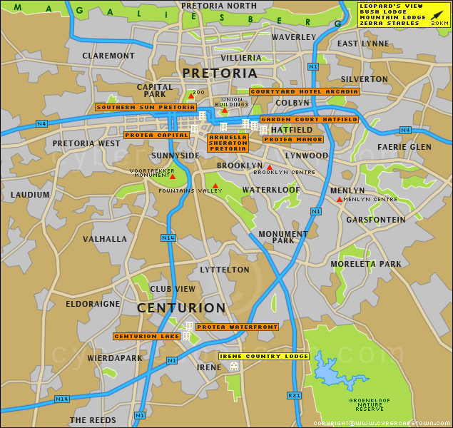 GuideoftheWorld.net offers a collection of Pretoria map, google map, Pretoria atlas, political, physical, satellite view, country infos, cities map and more map of Pretoria.