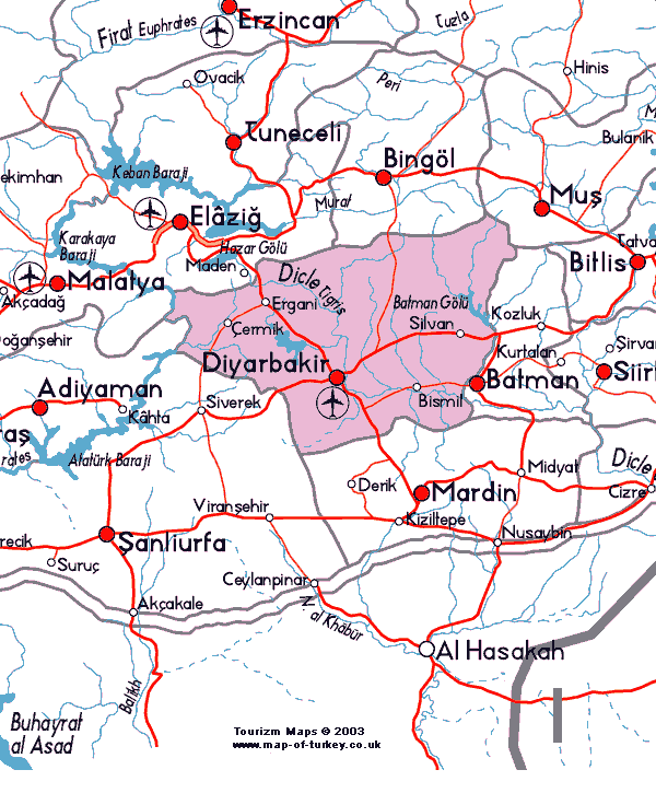 Navigate Diyarbakir Map, Diyarbakir city map, satellite images of Diyarbakir, Diyarbakir towns map, political map of Diyarbakir, driving directions and traffic maps.