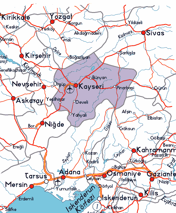 Navigate Kayseri Map, Kayseri city map, satellite images of Kayseri, Kayseri towns map, political map of Kayseri, driving directions and traffic maps.