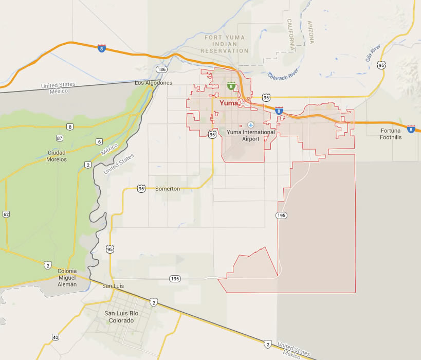 Navigate Yuma, Arizona Map, map of Yuma, Yuma Arizona regions map, Yuma satellite image, towns map, road map of Yuma.