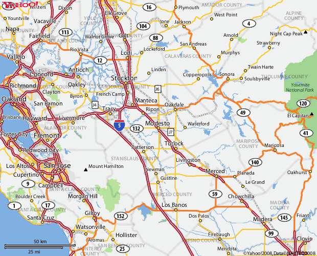 MODESTO CALIFORNIA HIGHWAY AND ROAD MAP WITH SATELLITE VIEW