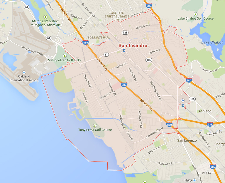 Navigate San Leandro, California Map, map of San Leandro, San Leandro California regions map, San Leandro satellite image, towns map, road map of San Leandro.