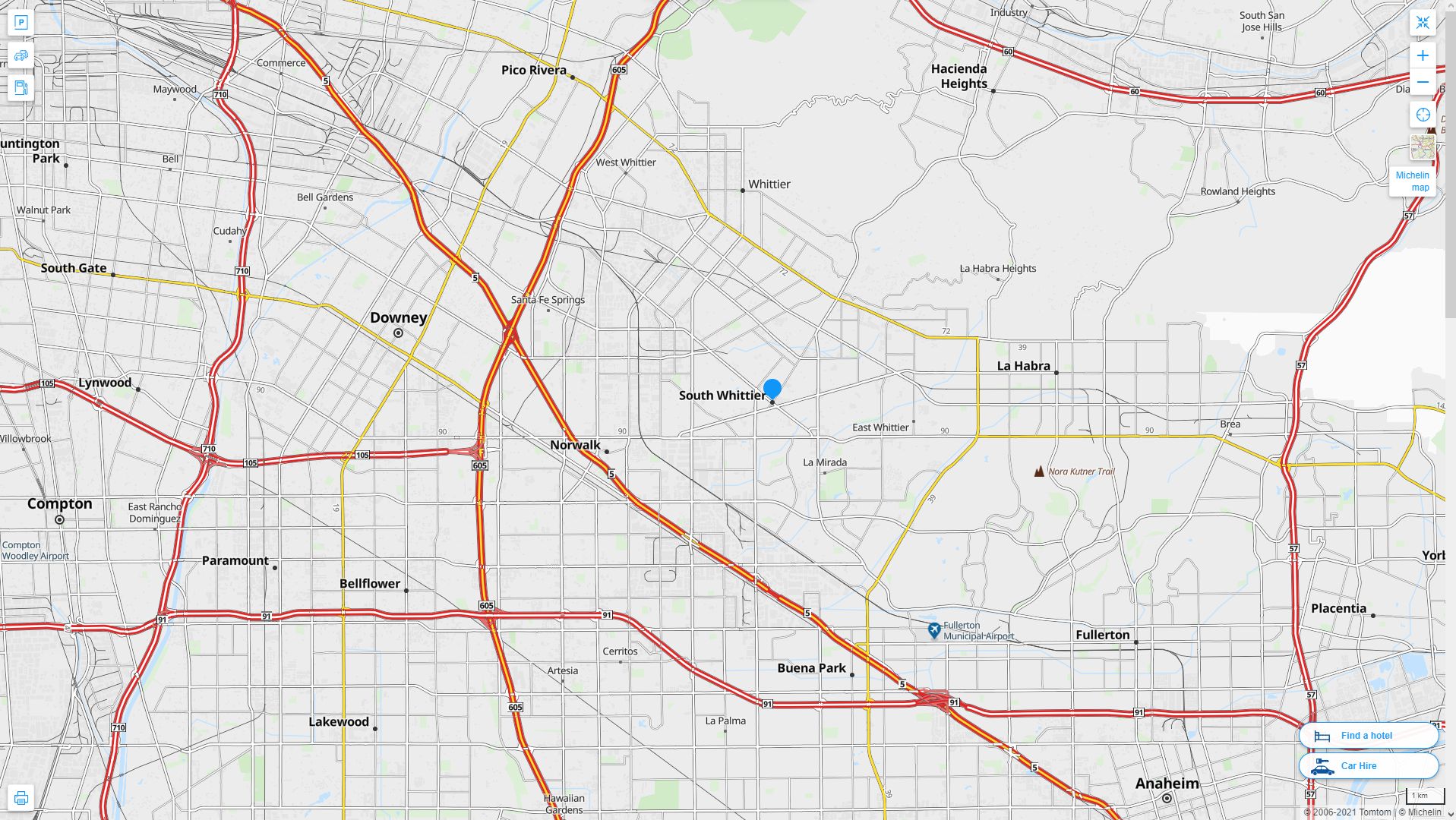 Navigate South Whittier, California Map, map of South Whittier, South Whittier California regions map, South Whittier satellite image, towns map, road map of South Whittier.